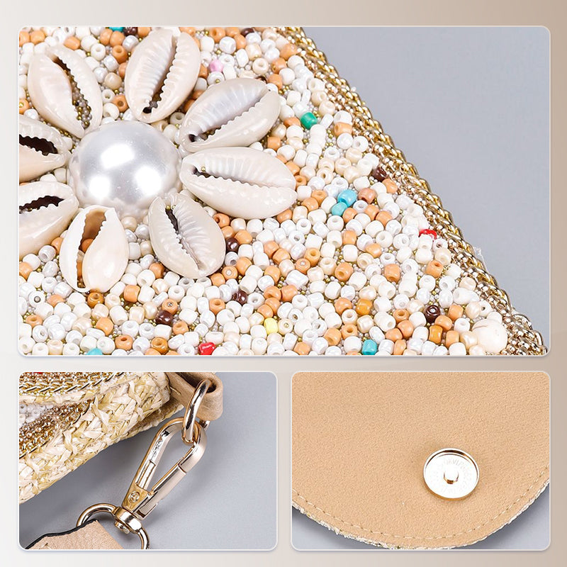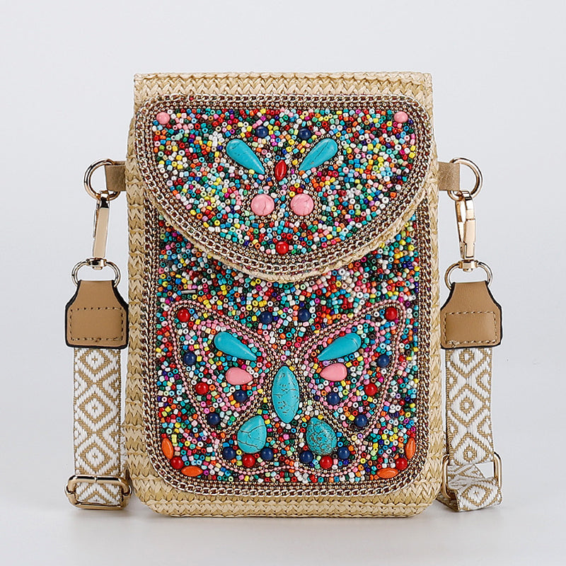 Zawartość zestawu: 1× Boho Chic Mała Słomiana Torebka z Koralikami