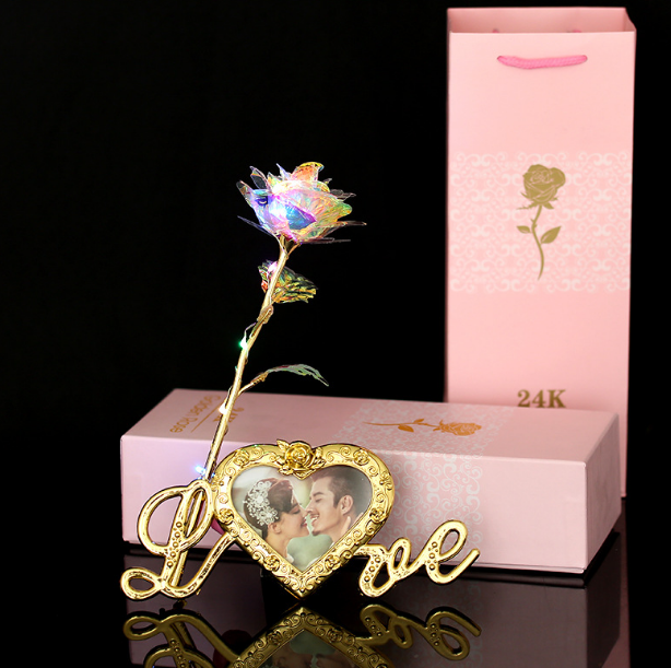 1* Kolorowa kryształowa róża + podstawa "LOVE" + certyfikat + pudełko upominkowe + torebka