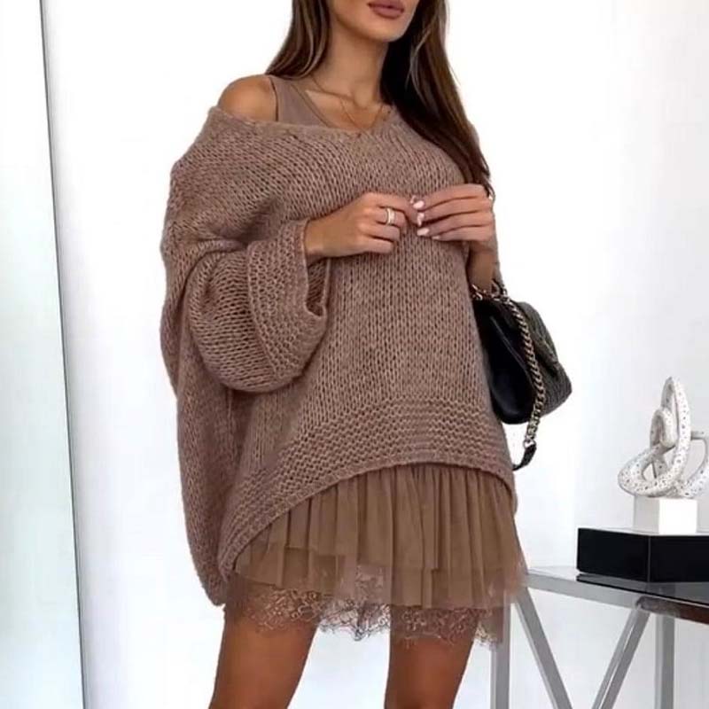 Pakiet zawiera: 1 * Damski przytulny luźny sweter z dekoltem w szpic