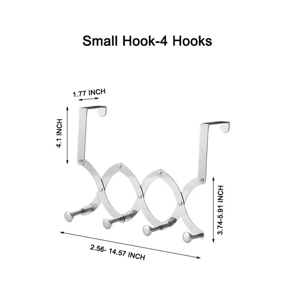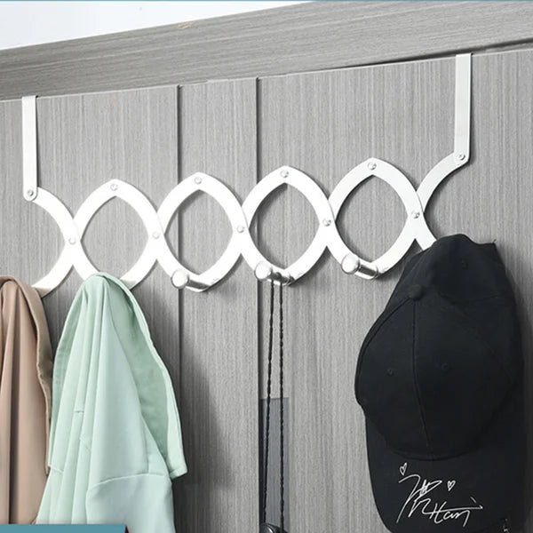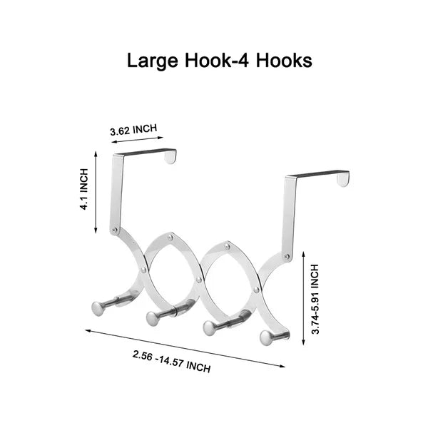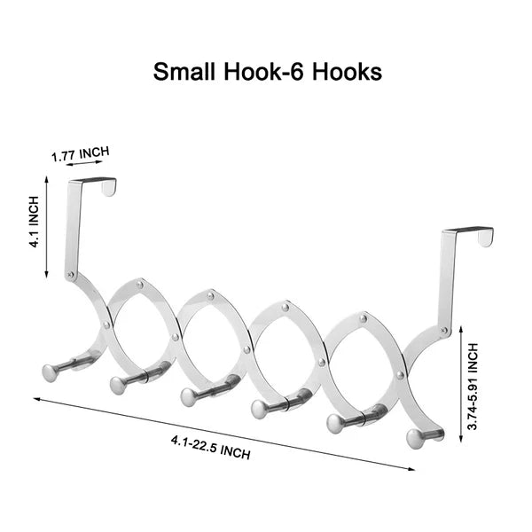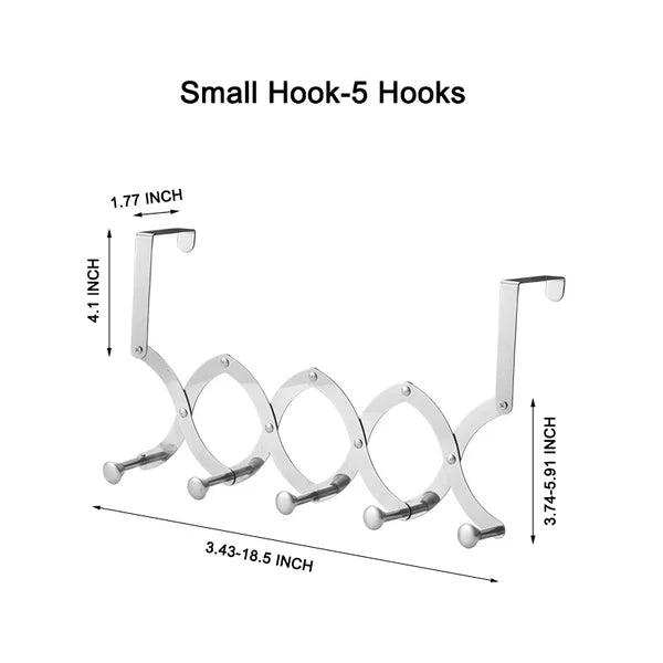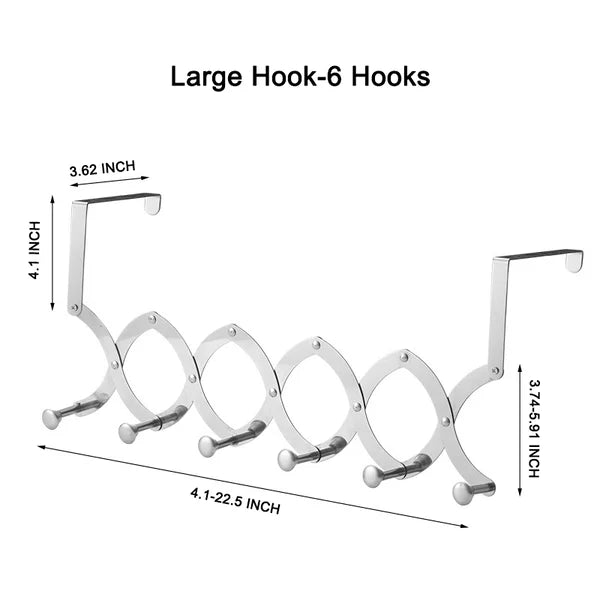 Rozszerzane wieszaki dostosowują długość, aby zoptymalizować całą powierzchnię drzwi. Wytrzymałe haczyki przytrzymają płaszcze, torby lub cokolwiek innego, co potrzebuje domu.