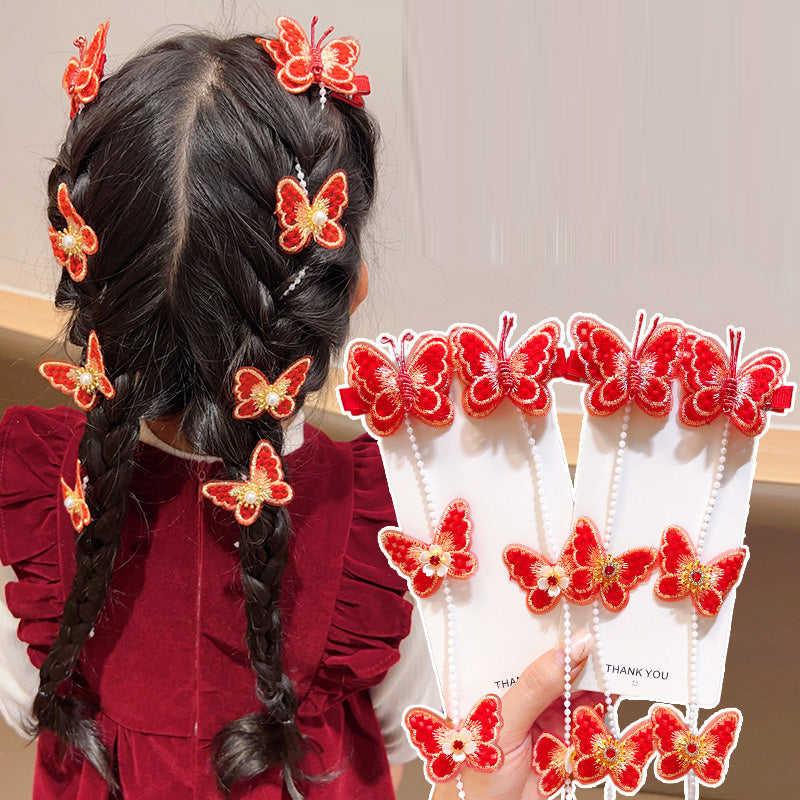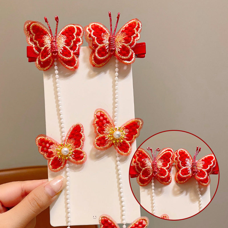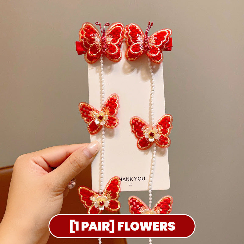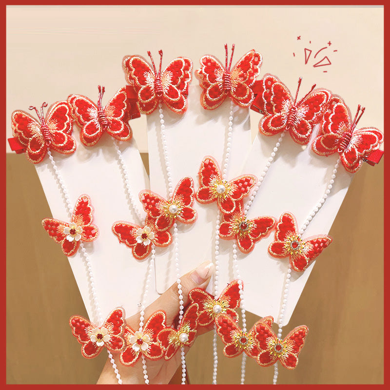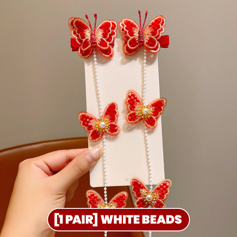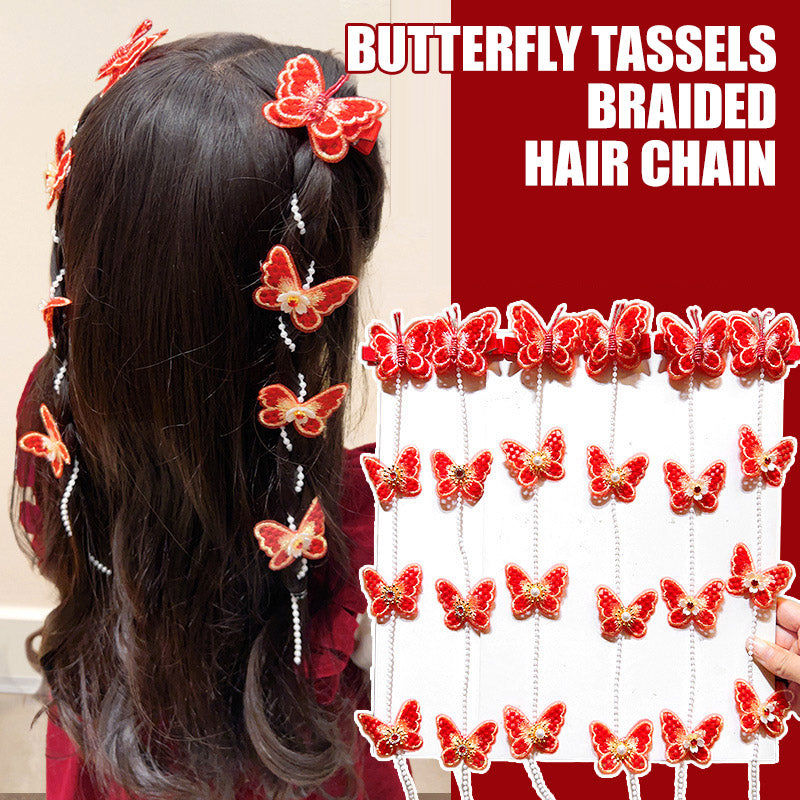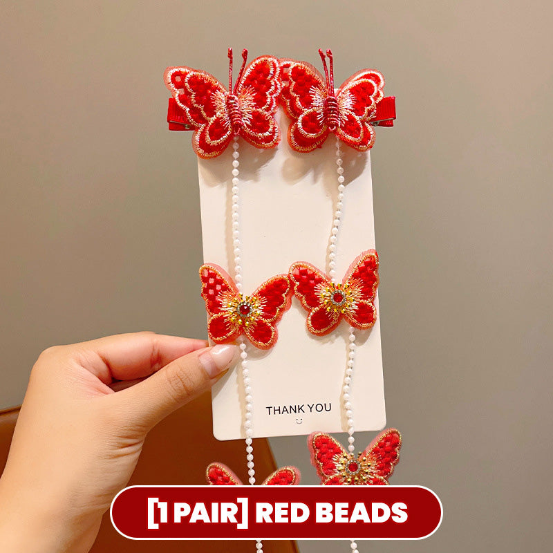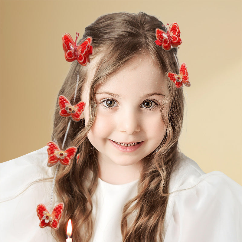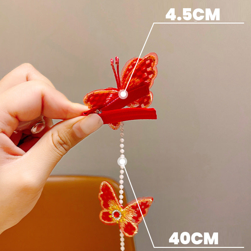 CZERWONE MOTYLE Z FRĘDZLAMI - Te łańcuszki do włosów przedstawiają jaskrawoczerwone motyle ozdobione delikatnymi frędzlami, które zapewniają wyjątkowy, uroczy wygląd.
