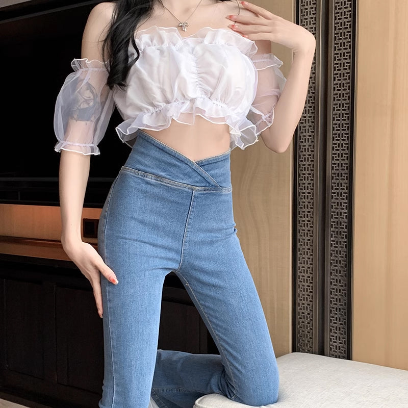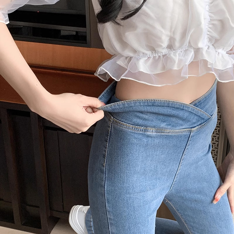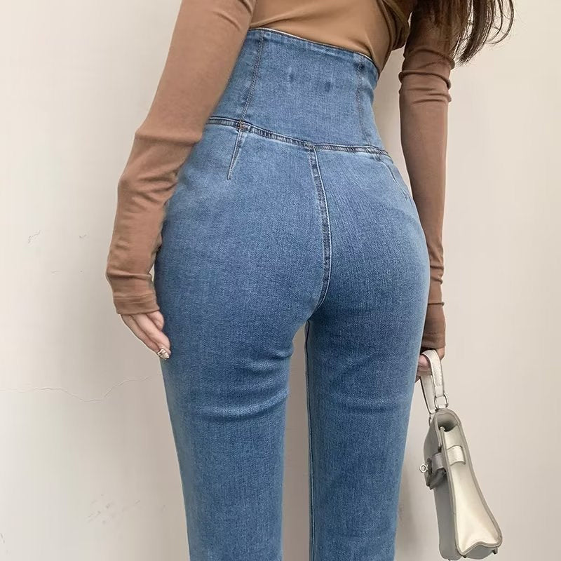 Bez zamka błyskawicznego/plisy z guzikami - Dżinsy z wysokim stanem i elastycznym, lekko rozszerzanym krojem to niezbędny element Twojej garderoby. Nie mają zamka ani guzików, dzięki czemu łatwo je założyć i zdjąć. Prosty i elegancki krój sprawia, że wyglądasz modnie i stylowo. Idealnie nadają się na każdą okazję.
