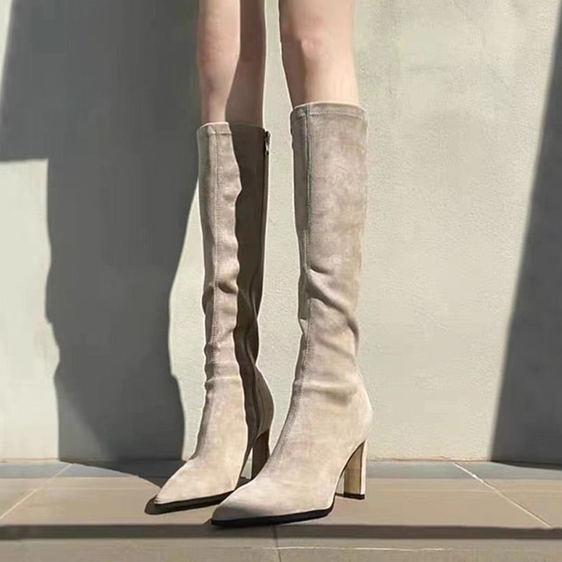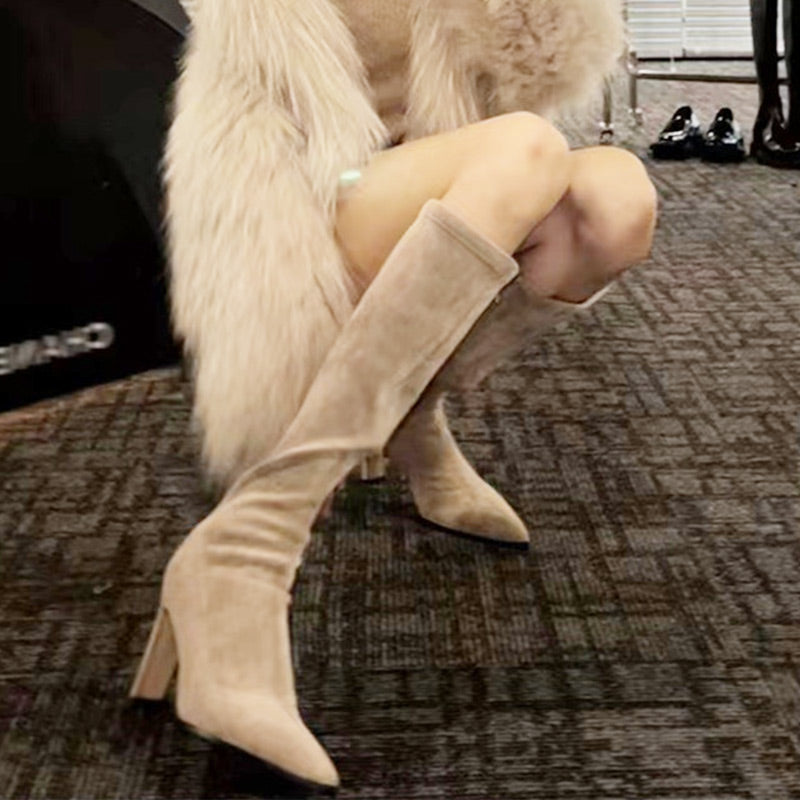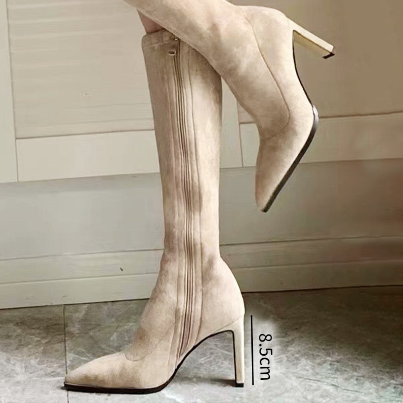 CHIC 8CM HEEL – Te kozaki za kolano mają 8,5 cm obcas, oferując wyrafinowany wygląd, zapewniając jednocześnie doskonały komfort podczas długiego noszenia.