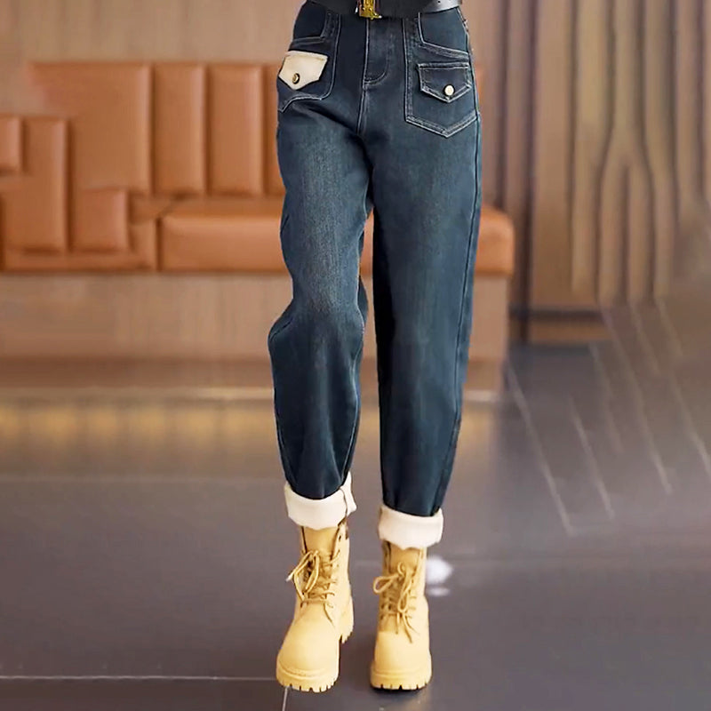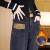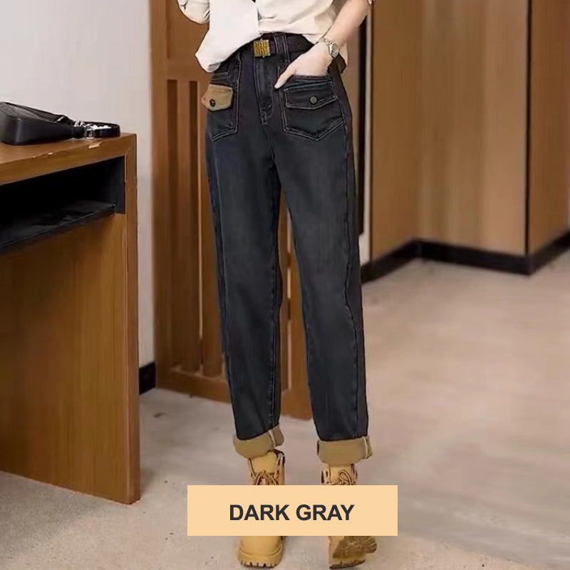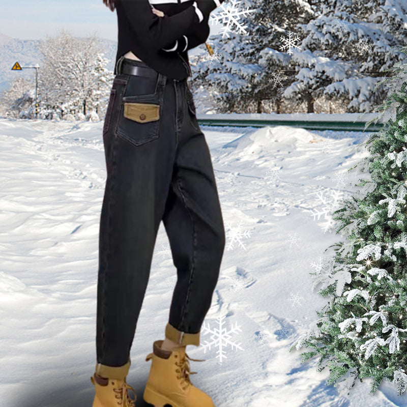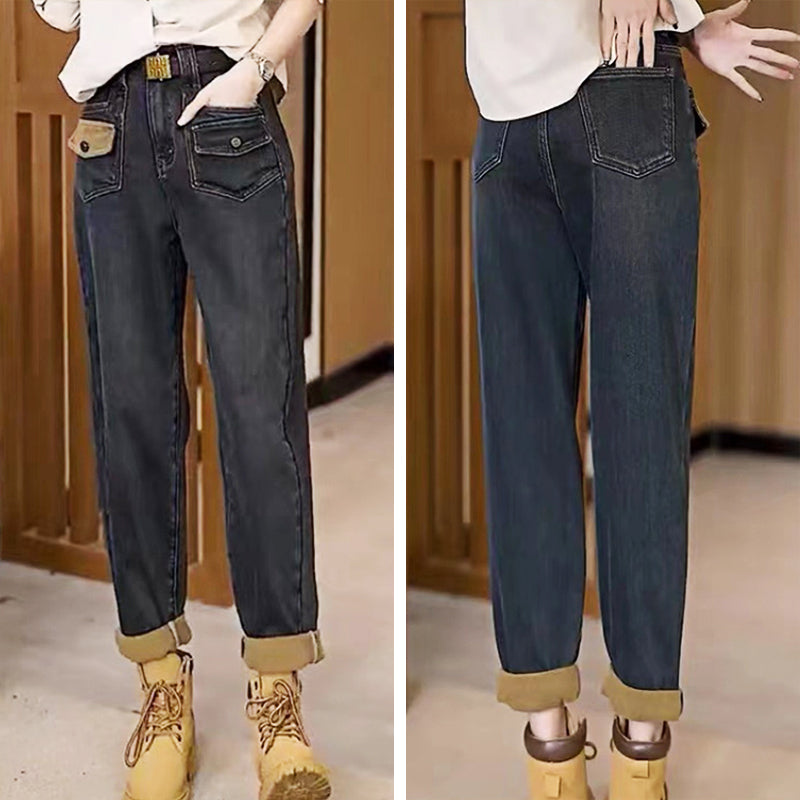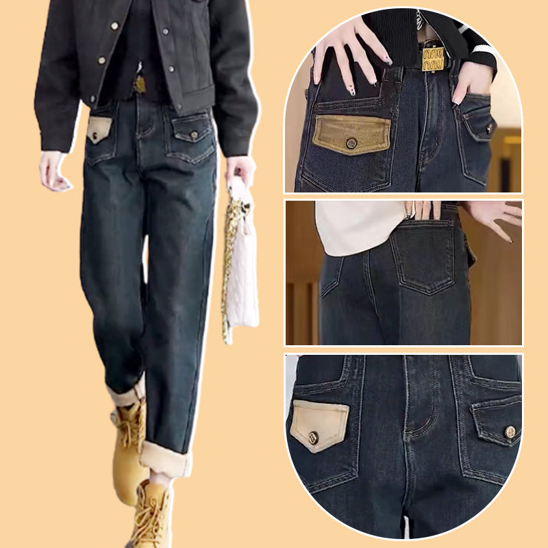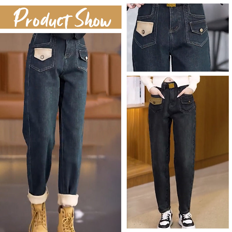 [Najlepszy prezent dla niej] Damskie niesymetryczne jeansy z polaru w stylu retro*1