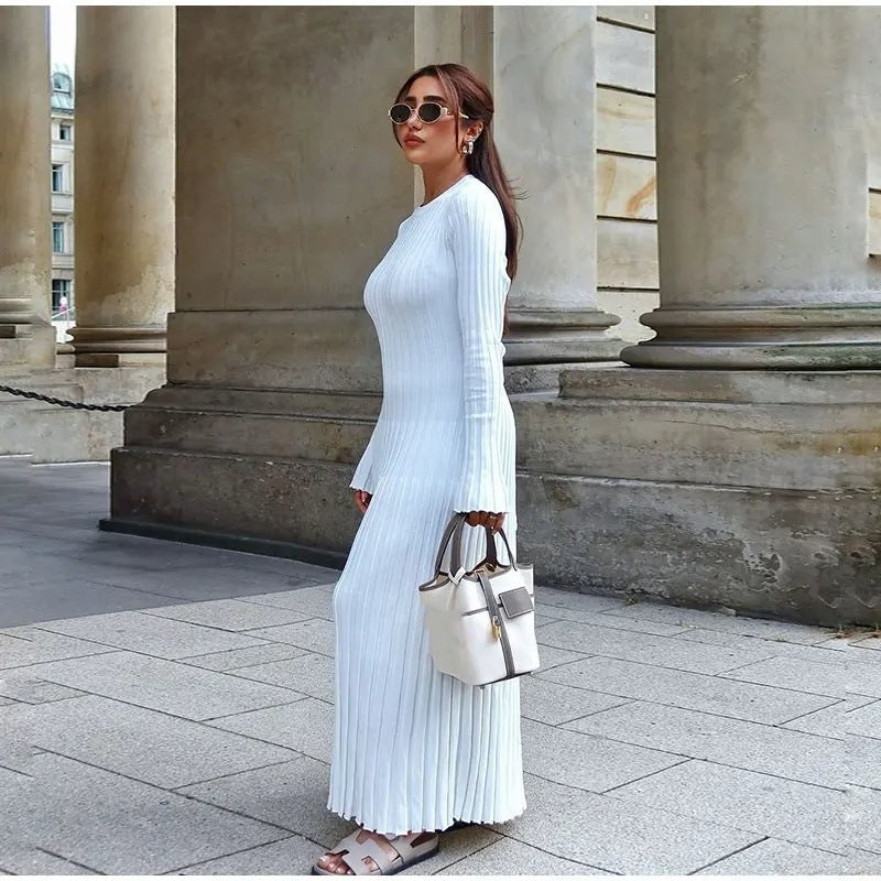 DŁUGI RĘKAW I MAKSYMALNA DŁUGOŚĆ: Idealna na chłodniejsze dni sukienka z długimi rękawami i długością maxi, zapewniająca ciepło i osłonę bez uszczerbku dla stylu i elegancji.