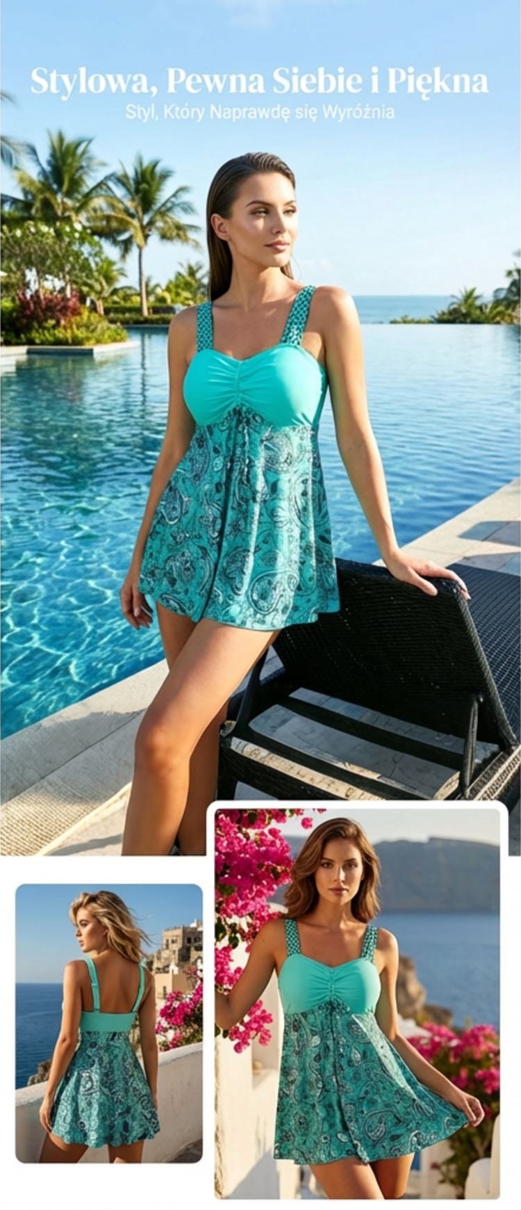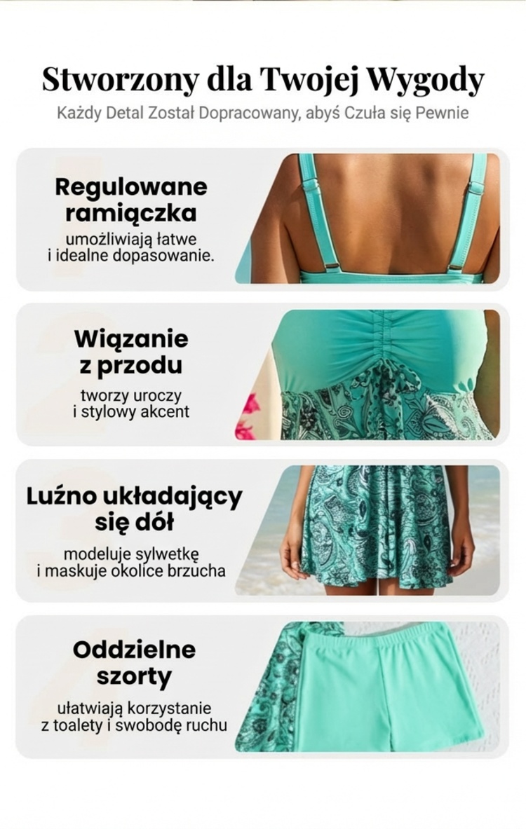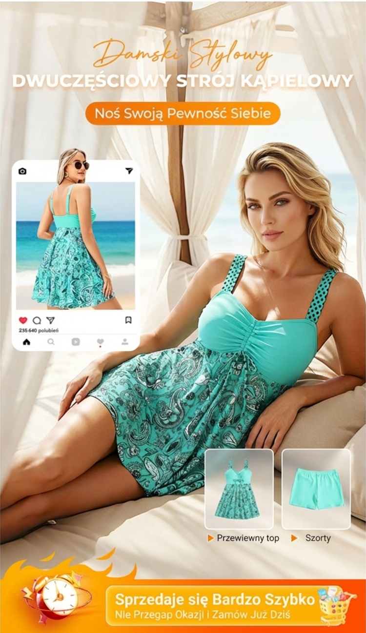 👙Top z ramiączkami i dopasowane szorty plażowe – strój kąpielowy z odpinanymi ramiączkami