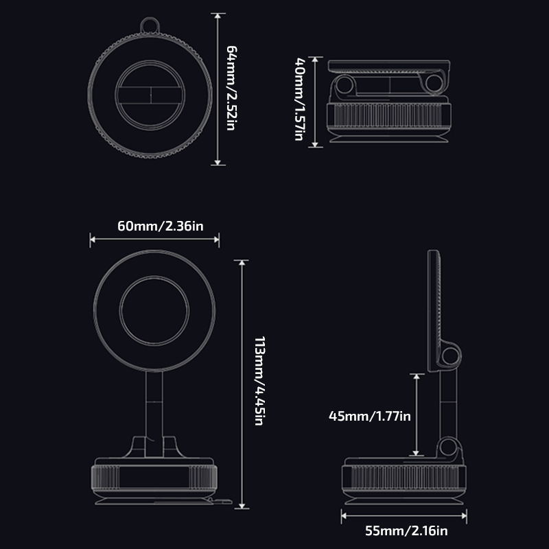 Pakiet zawiera: 1 * Próżniowy magnetyczny uchwyt samochodowy na telefon