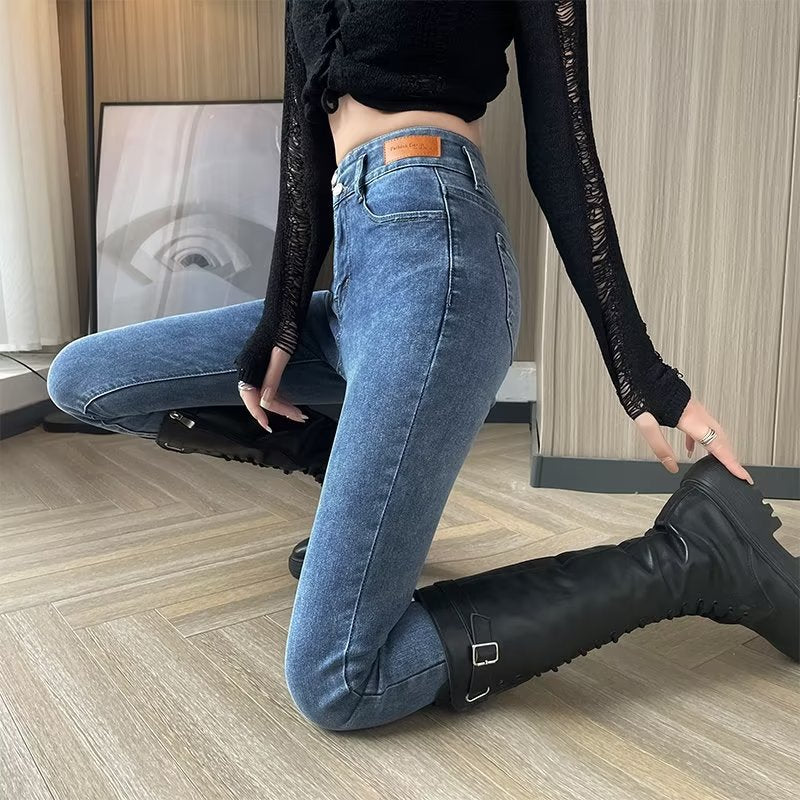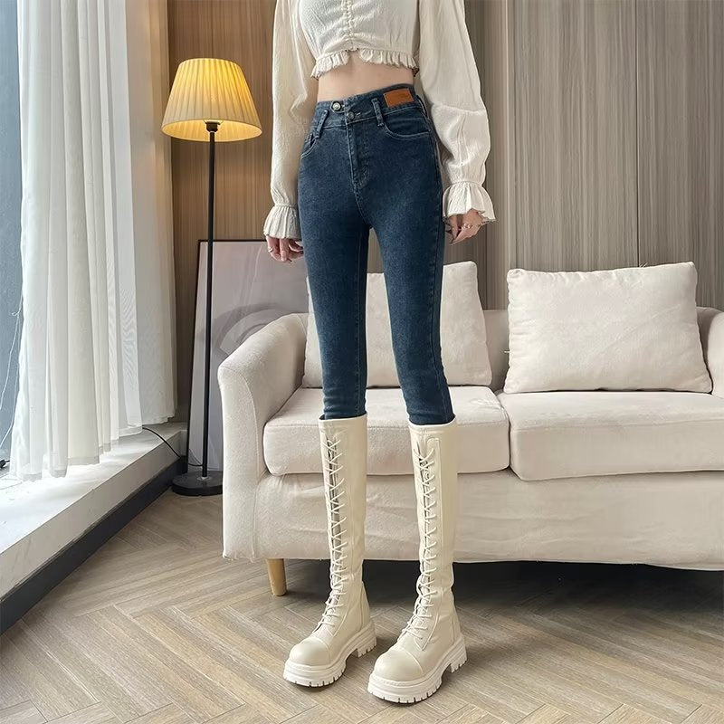 1 * Zimowe jeansy damskie slim z podszewką pluszową