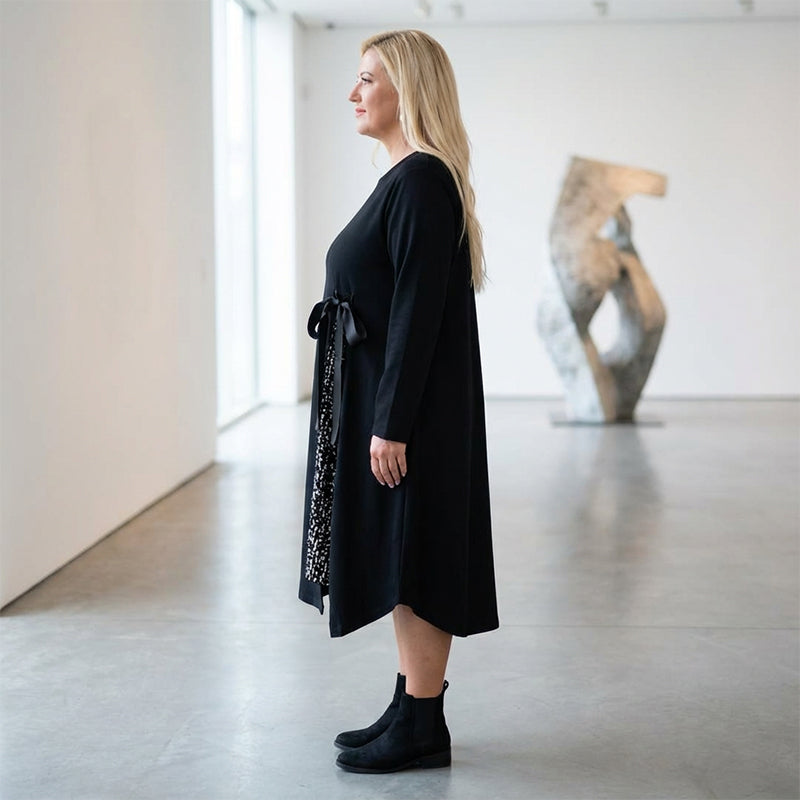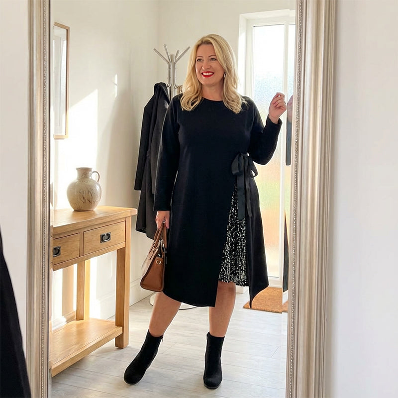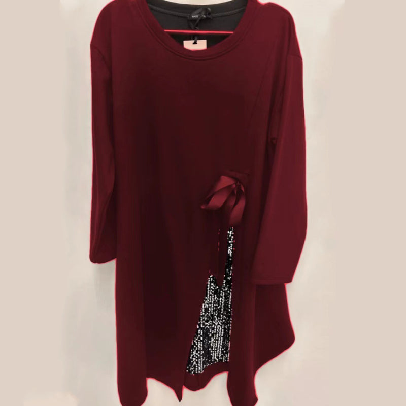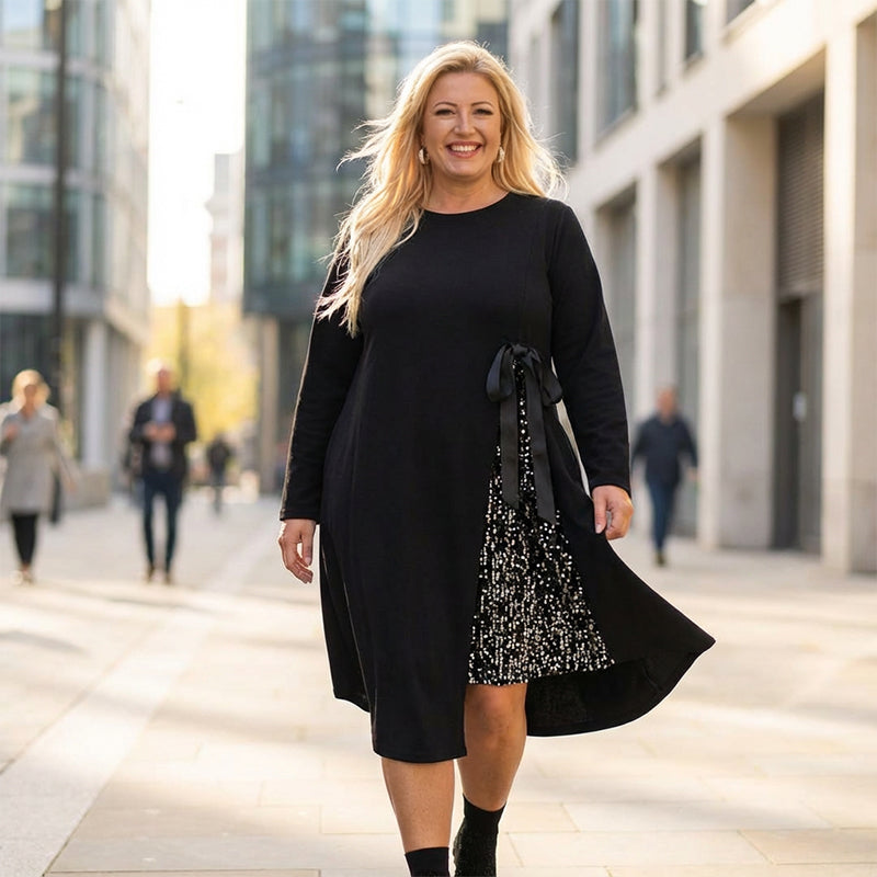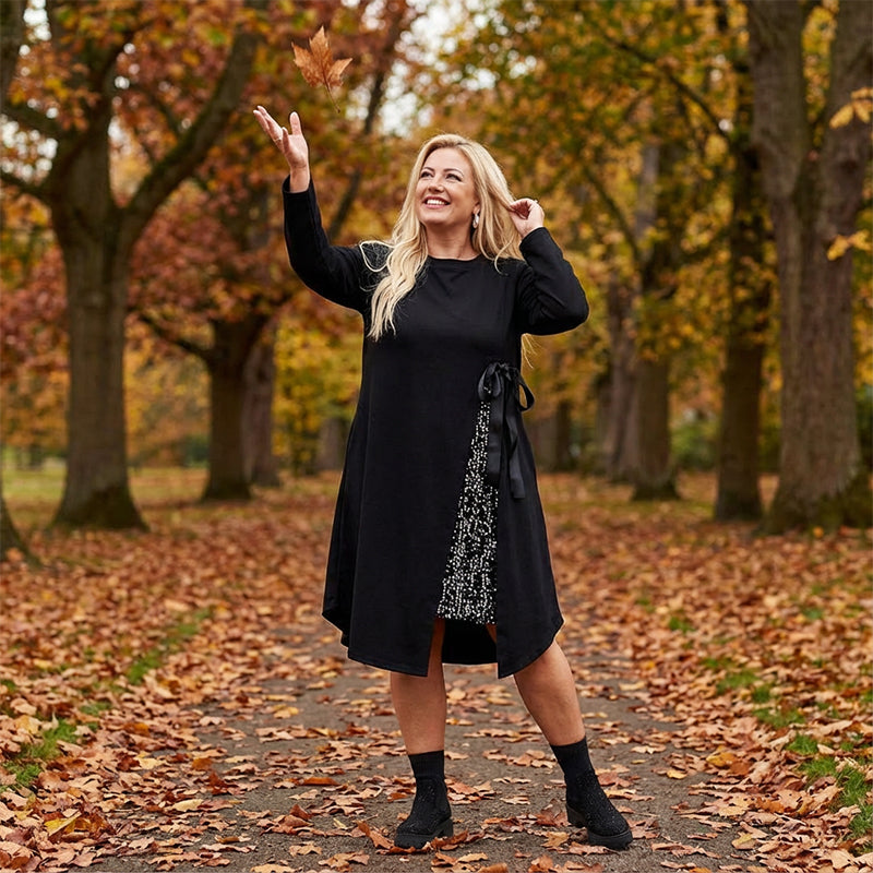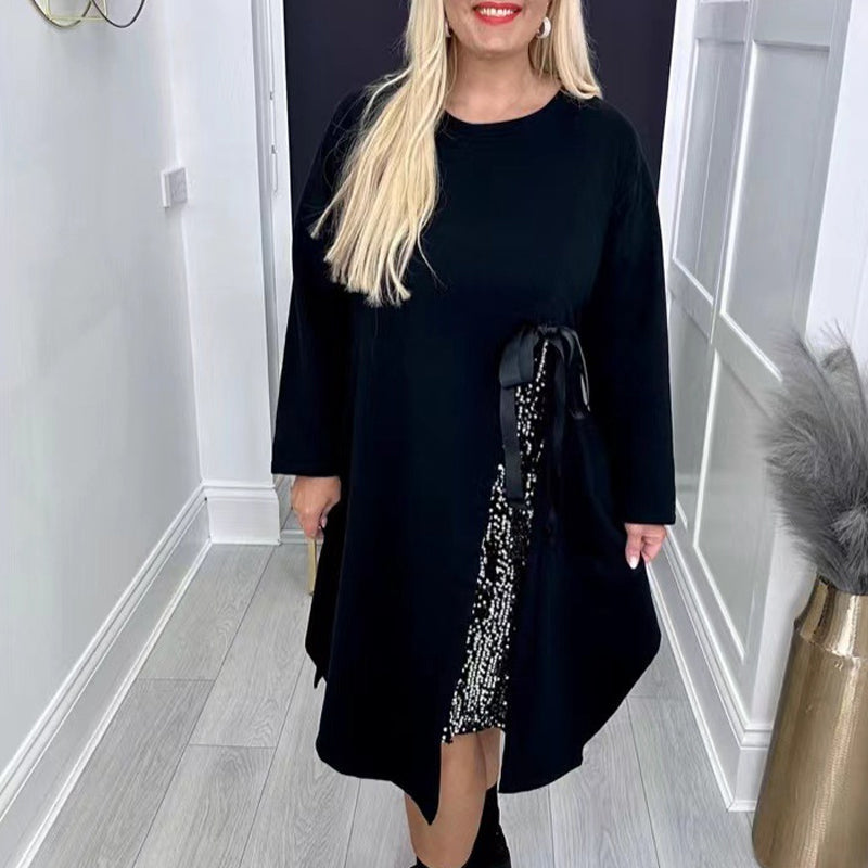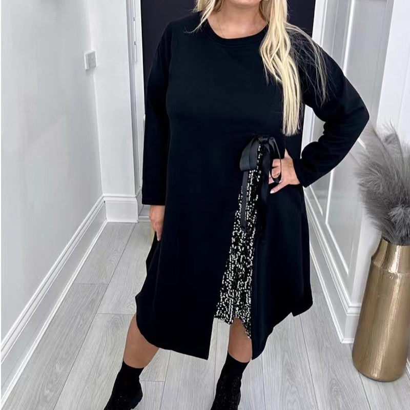 Damska sukienka z długim rękawem i wstawką z cekinów