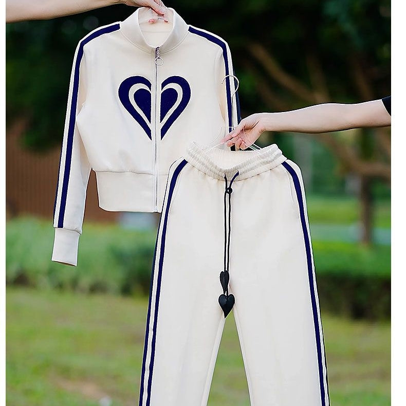 STYLOWY I PRZYTULNY DESIGN - Bluza ma unikalny wzór w kształcie serca, dodając odrobinę romantyzmu do jej sportowego wyglądu. Zapięcie na suwak ułatwia zakładanie i zapewnia dużo ciepła. Dopasowane spodnie mają sznurek z zawieszką w kształcie serca, dzięki czemu są zarówno modne, jak i funkcjonalne.