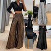 Pakiet zawiera 1 * Damskie modne cekinowe spodnie z szeroką nogawką z wysokim stanem