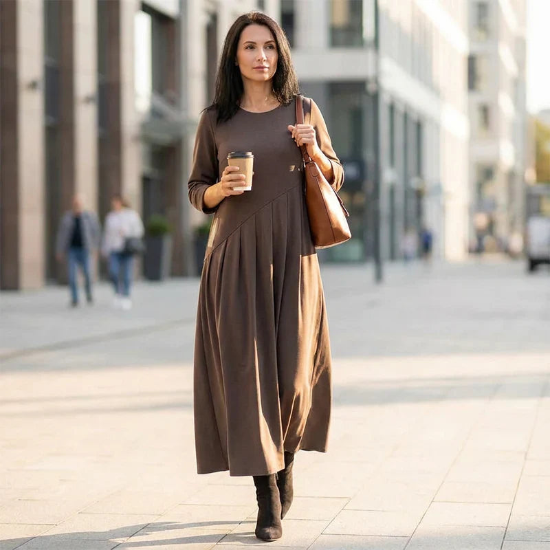 RELAKSUJĄCY KROJ A-LINE – Zapewnia wygodny i tolerancyjny krój, który pięknie dopasowuje się do sylwetki. Pozwala na nieograniczoną swobodę ruchów i gwarantuje komfort oraz pewność siebie przez cały dzień.